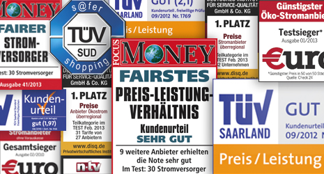 uns unabhängige Tests regelmäßig mit Spitzenpositionen aus - bereits mehrere Jahre in Folge sind wir beispielsweise einer der "fairsten Stromversorger" laut Focus Money und